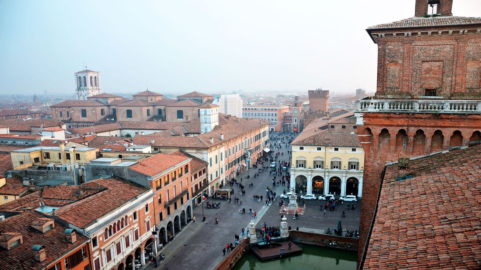 Ferrara ligger i regionen Emilia-Romagna, mellan Padova och Bologna. Mellan år 1200 och år 1500 regerade familjen d´Este här och bidrog till att göra staden till ett område i välstånd, och i full harmoni med natur, konst och arkitektur. Delizie Estensi är ett fantastiskt exempel på slott och villor som byggdes till styret i staden, med mellanliggande trädgårdar. Själva staden är omringad av en av de bäst bevarade stadsmurarna i Italien, vilken du fortfarande kan promenera på.
