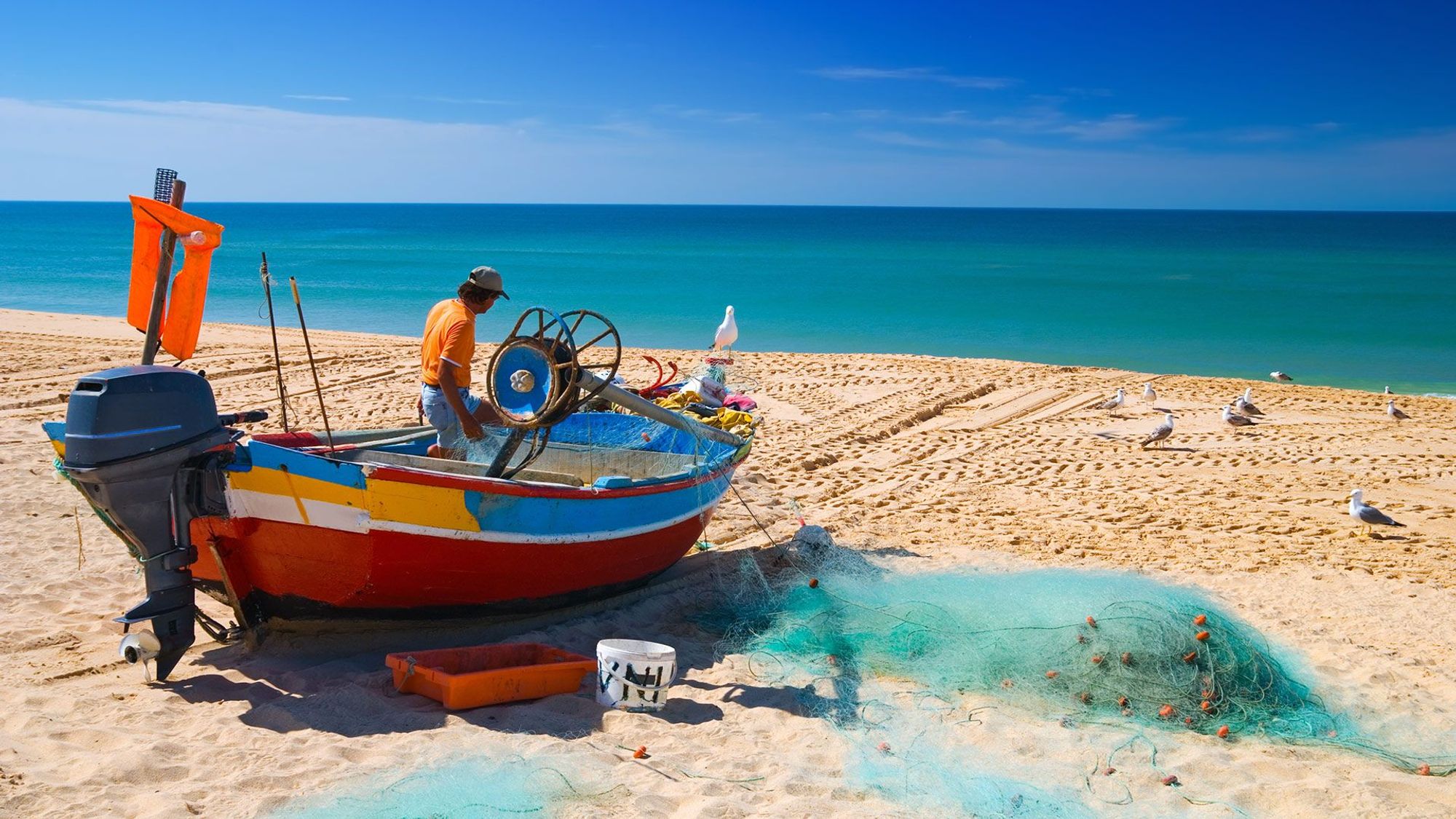 Området är ett av de säkraste på Algarvekusten där fiskebåtarna sätts i vattnet och dras upp på land direkt från stranden eftersom det inte finns någon hamn i Armacao de Pera.